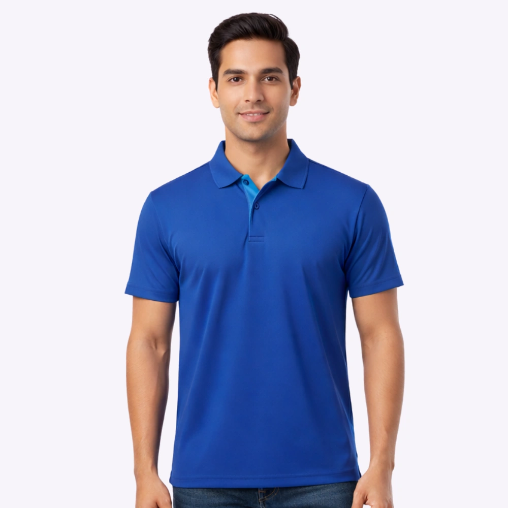 - Includes a multi-button placket and a reinforced ribbed polo collar.