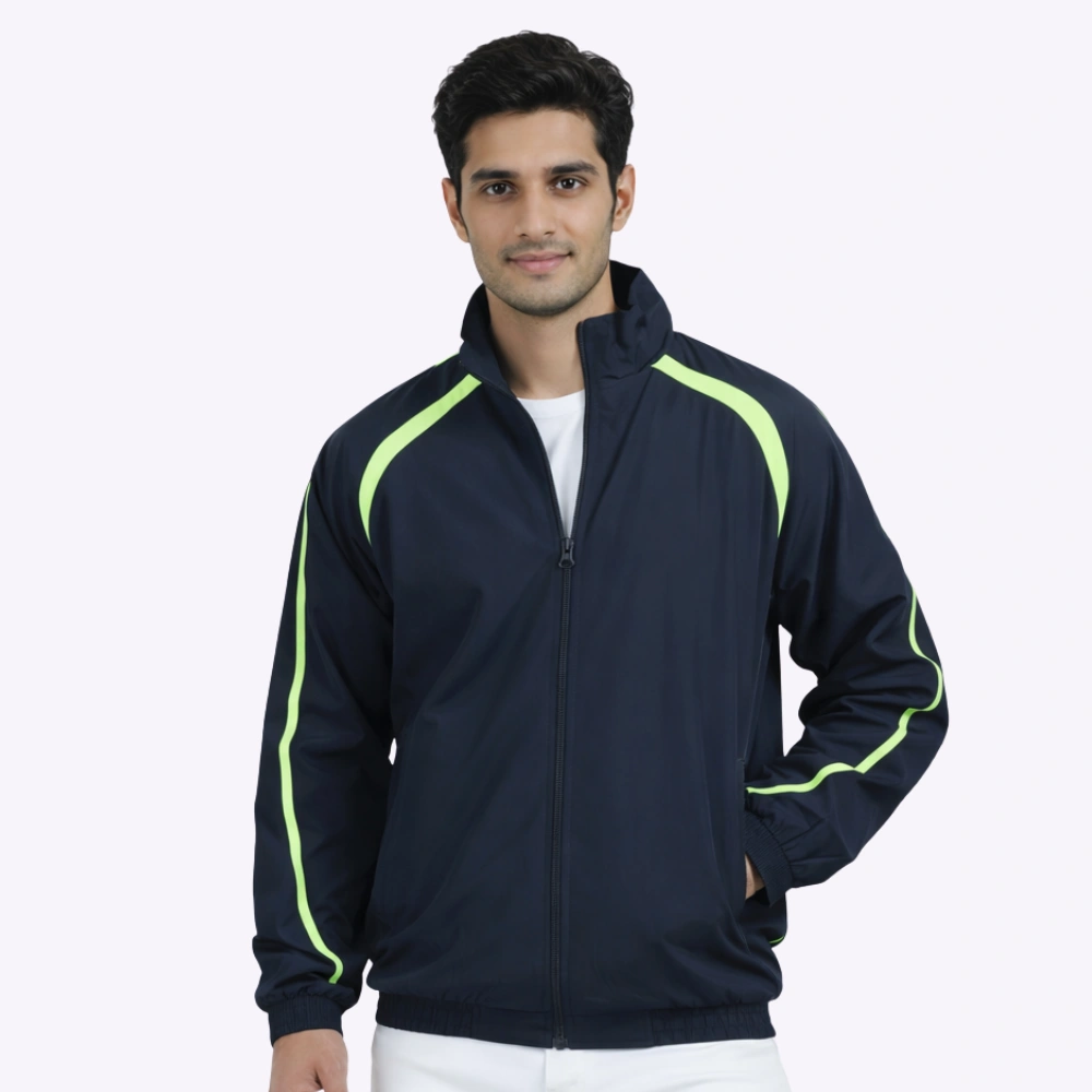 The ultimate lightweight track jacket designed for active individuals and sports teams requiring high performance. Made from dry-fit polyester, this water-repellent upper features contrast piping and temperature control, providing a professional look that keeps athletes comfortable during warm-ups or cool-downs.