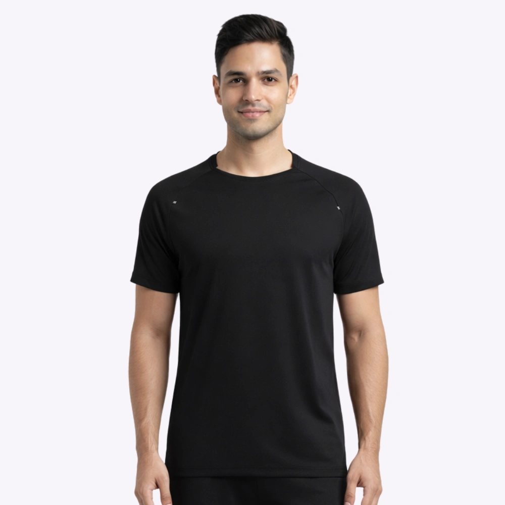 This high-performance raglan sleeve t-shirt is engineered with moisture-absorbent technology for maximum sports comfort. The super stretchy 150 GSM polyester fabric ensures superior breathability and quick-dry functionality, allowing for unrestricted movement during intense physical activities or athletic training.